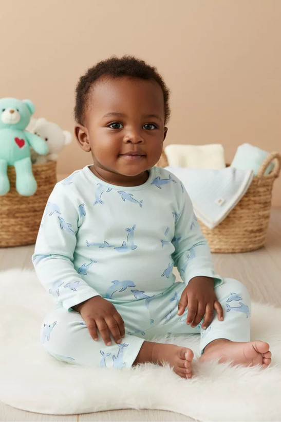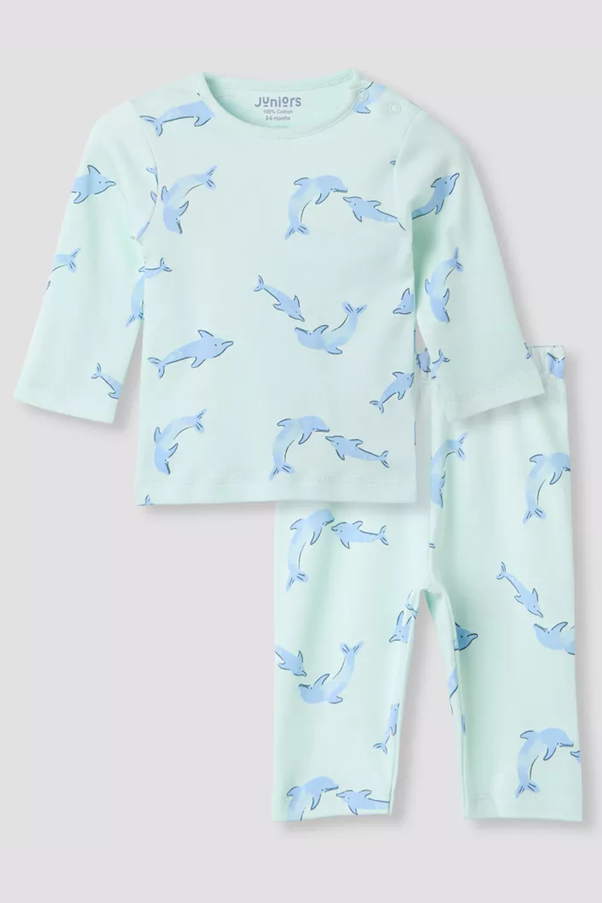 ست تیشرت و شلوار راحتی نخی جونیورز طرح دلفین