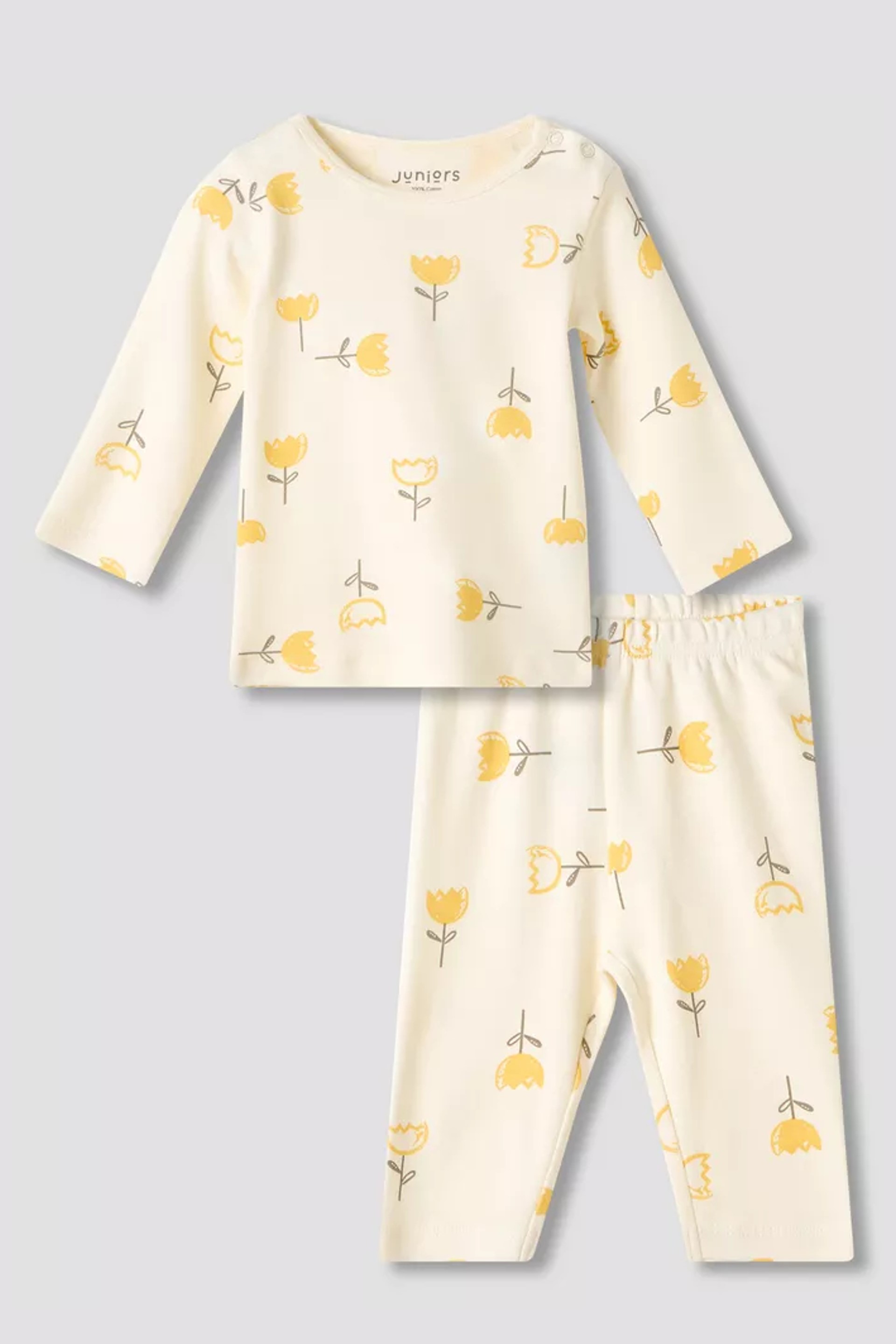 ست تیشرت و شلوار راحتی نخی جونیورز طرح فلوررال زردناموجود